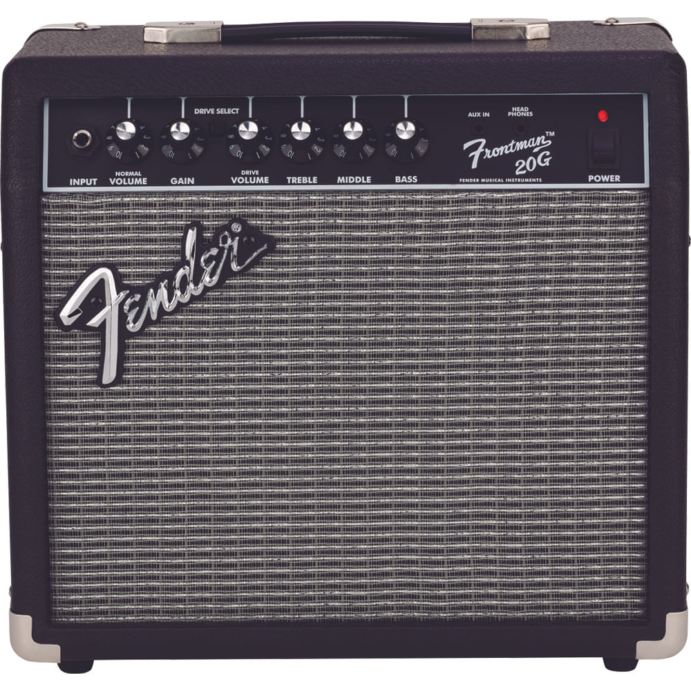 O Frontman 20G reúne cosméticos familiares da Fender e a melhor qualidade de som da categoria a um ótimo preço que cabe no orçamento de cada músico. O 20G apresenta um design simples e intuitivo que qualquer pessoa, de iniciantes a profissionais, entenderá imediatamente. Inclui um canal limpo com um volume e três botões EQ para flexibilidade sonora, além de um canal Drive comutável separado com seu próprio volume. Ele também vem com entrada auxiliar de 1/8” para tocar junto com suas músicas favoritas e um fone de ouvido para prática silenciosa. O Frontman também produz 20 watts em um alto-falante de design especial de 8” que oferece ótimos tons ao praticar ou tocar com os amigos.