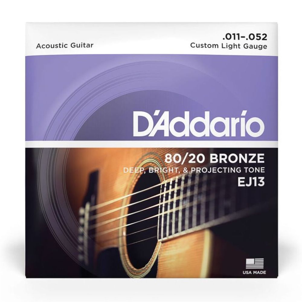 O Encordoamento D’Addario EJ13 é um jogo de cordas de aço para violão folk, desenvolvido na medida Custom Light. Ele combina a leveza das cordas agudas com graves mais encorpados, oferecendo conforto na execução sem perder projeção e brilho. Ideal para músicos que buscam equilíbrio entre tocabilidade suave e sonoridade cheia, é uma ótima escolha para quem toca tanto base quanto dedilhados.