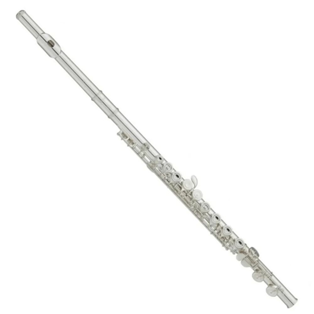 - Flauta transversal soprano (C), confeccionada com alpaca, banhada em prata chaves, fechadas com braços longos, G deslocado, c/ estojo e acessórios. Mod. Standard.