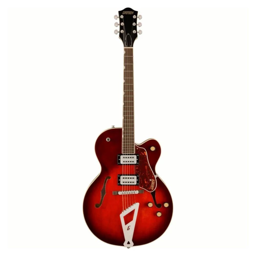 A guitarra Gretsch G2420 STRML BRST é um modelo semi-acústico com visual clássico em acabamento BRST (Brown Sunburst), oferecendo timbre rico e ressonante com ótima presença para rock, blues, jazz e outros estilos. Ela combina construção refinada, conforto de toque e versatilidade tonal, sendo ideal para ensaios, shows e gravações.