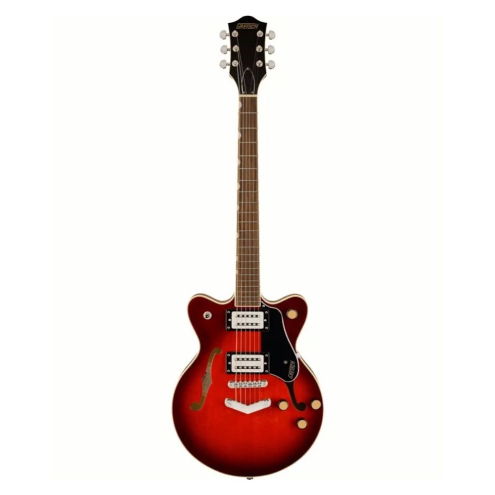 A guitarra Gretsch G2655 STRML Claret Burst é um modelo semi-acústico com visual elegante e acabamento Claret Burst, oferecendo timbres encorpados com boa ressonância e versatilidade para gêneros como rock, blues, jazz e pop. Com construção confortável e controles intuitivos, proporciona ótima performance tanto no estúdio quanto no palco.