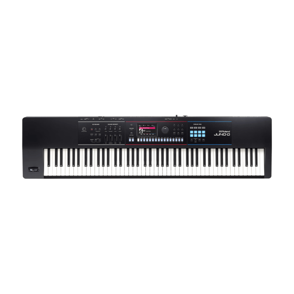 Sintetizador Roland com motor sonoro ZEN-Core expansível, tela colorida, 88 teclas com ação de piano e conectividade prática com computadores e smartphones.