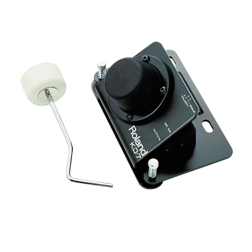 Pad de bumbo sensível e dinâmico que pode ser usado com pedal de bumbo convencional (não incluso). Possui conector input mix para a conexão de mais um KD-7 adicional, compondo um sistema similar de pedal duplo. O KD-7 é ideal para ser usado com a linha de percussão digital Roland, como o HPD-20, SPD-SX e SPD-30, ou kits V-Drums.